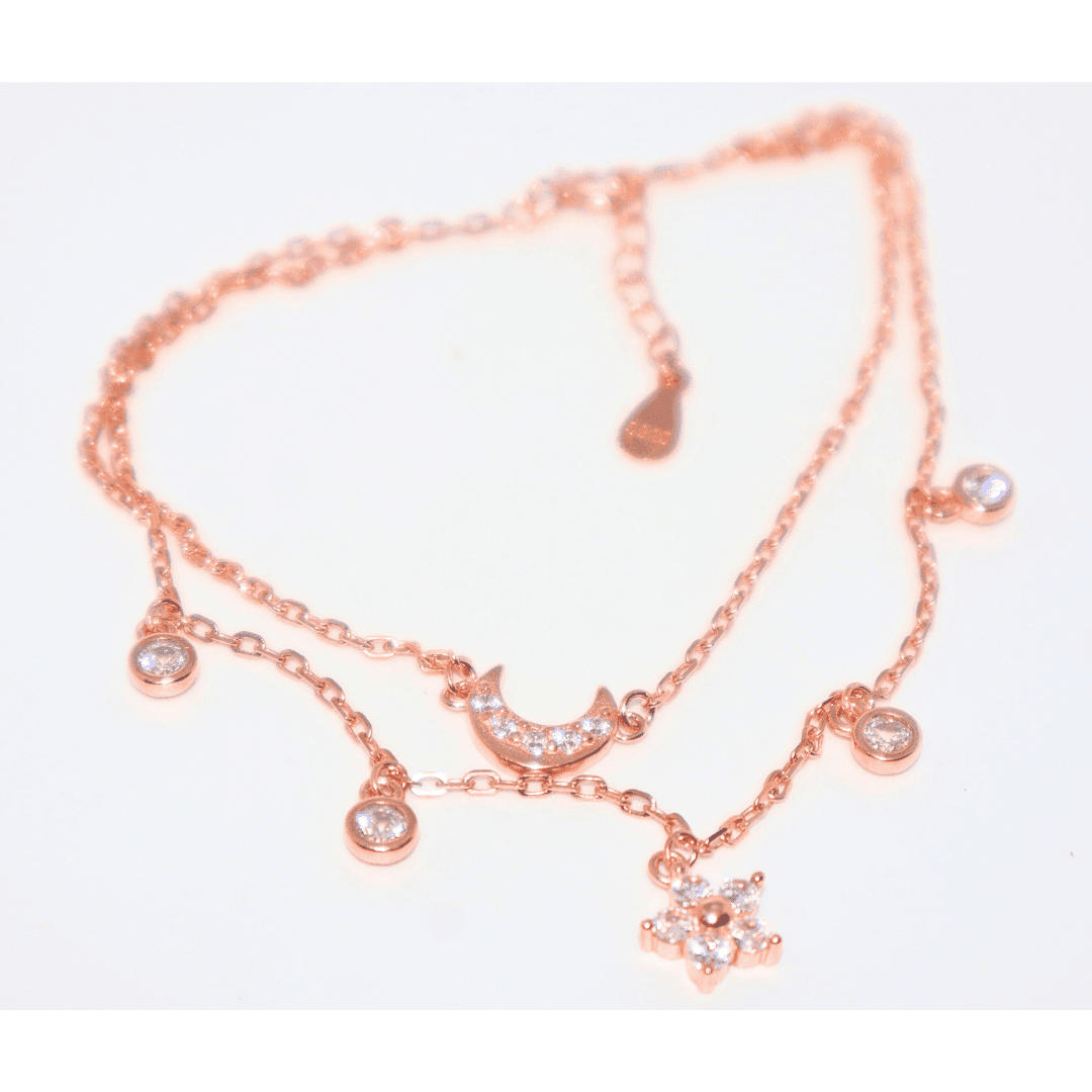 Women's Pure Silver Diamond Bracelet (Rose Gold) - Moon Love