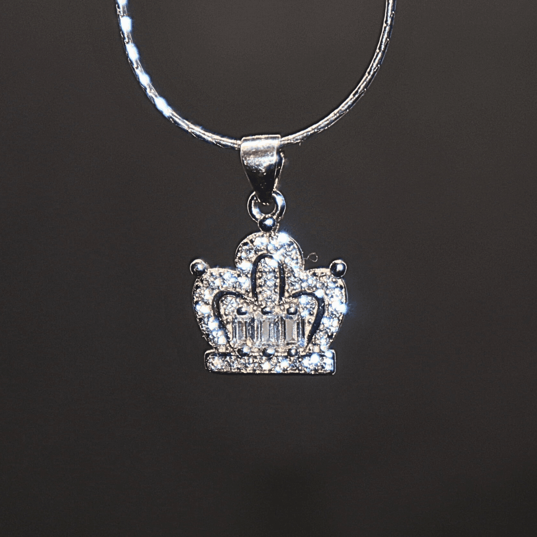 Pure Silver & Cz Diamond Charm Pendant - Bishop's Crown