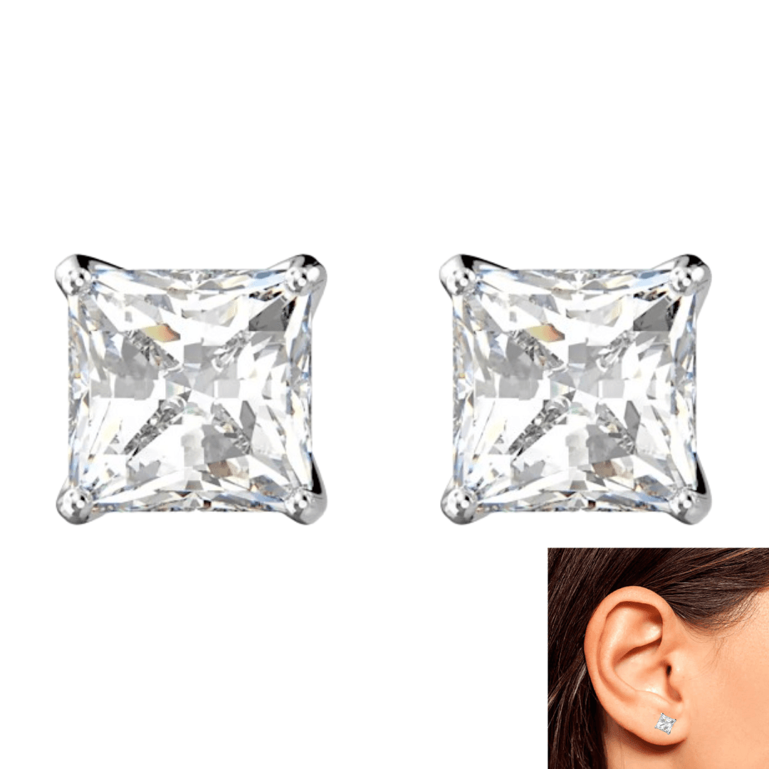 Pure Silver & Diamond 5mm Cz Solitaire Square Studs
